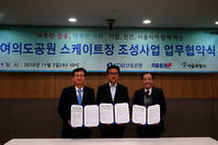 산업은행은 2일 서울시청 신청사에서 서울시, 키움증권과 여의도공원 스케이트장 조성을 위한 업무협약을 체결했다. 작년에 이어 두 번째 조성하는 여의도공원 스케이트장은 공원 유휴공간을 활용해 동절기 공원이용 활성화에 기여하고, 기업 자본 후원을 통해 민·관 거버넌