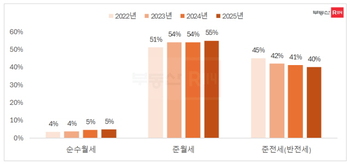 서울 아파트 전세값 상승과 공급난이 지속되는 가운데 임대차시장에서 준월세 비중이 커지고 있는 것으로 나타났다.20일 부동산R114가 국토교통부 실거래가 자료를 분석한 결과 서울 아파트 임대차계약 가운데 준월세 비중은 2022년 51%에서 2023년과 2024년 54%로
