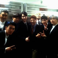 슈퍼주니어 '마마시타', 전현무와 기자회견 후 단체샷 '훈훈'