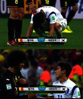 벨기에 마루앙 펠라이니(27·맨체스터 유나이티드)가 이근호에 따뜻한 손길을 내밀었다. 펠라이니는 27일(한국시간) 2014 브라질 월드컵 조별리그 한국과 벨기에 경기가 끝난 후 그라운드에 주저앉아 고개를 푹 숙이고 있는 이근호에게 다가가 눈길을 끌었다.그는 이