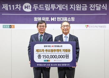 현대홈쇼핑이 고객의 따뜻한 기부로 나눔의 의미를 더하며 장애인 가정 청소년 지원 사업을 꾸준히 펼치고 있어 눈길을 끈다.현대홈쇼핑은 21일 서울 강동구 천호동 현대홈쇼핑 본사에서 장애인 가정 장학사업인 ‘하이(H!) 두드림투게더’ 지원금 전달식을 열고 한국장애인재활협회