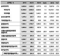 KB금융그룹의 지난해 순이익이 2012년 대비 25.9% 감소한 1조2830억원으로 집계됐다. KB금융은 7일 2013년 경영실적 발표를 통해 매출액 22조5972억원, 영업이익 2조567억원, 당기순이익 1조2830억원을 시현했다고 밝혔다. 2012년과