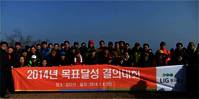 LIG투자증권은지난 4일 김경규 사장을 비롯한 임직원 50여명이 경기도 하남시 검단산에 올라 [2014년 사업목표 달성을 위한 결의대회]를 진행했다고 6일 밝혔다. 임직원간 소통 활성화와 단합을 위한 이번 행사는 1부 소