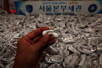 중국산 짝퉁 이어폰 수천 개를 밀수입해국내 유명기업 브랜드인 것처럼 판매한 20대 남성이 관세 당국에 적발됐다.<관세청 서울본부세관>은, 중국에서 들여온 가짜 삼성 스마트폰 전용 이어폰,6,000개(정품가격 기준 9,000만원 상당)를 밀수입