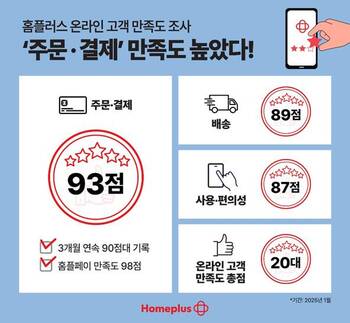 홈플러스 "온라인 주문·결제 고객 만족도 3개월 연속 90점대"