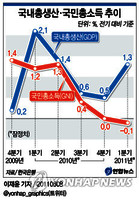 1분기 국민총소득(GNI)이 2년만에 감소했다. 국내총생산(GDP)은 전기대비 1.3% 증가하면서 경제 성장세가 지속됐지만, 고유가 등의 여파로 국민의 살림살이는 악화돼 대조를 이뤘다. 한국은행이 8일 발표한 `2011년 1분기 국민소득(잠정)'에 따르면 1분기 실질