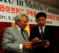 KT가 '스마트 캠퍼스' 시대를 열고 있다. 24일 KT(030200)와 건국대학교는 서울시 광진구 화양동 건국대 행정관에서 아이패드2 도입 기념행사를 갖고 전 교직원을 대상으로 공급을 시작한다고 전했다. 이를 시작으로 건국대는 KT와 공동으로 아이패드 기반 스마트