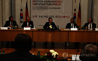 독일 방문 사흘째인 이명박 대통령은 10일 오후 (현지 시간) 세계적인 금융도시인 프랑크푸르트 상공회의소에서 독일 주요 기업인들과 간담회를 가졌다. 독일상공회의소 주최로 열린 이날 간담회에는 지멘스의 미하엘 쥐스 이사, 보쉬의 헤르만 캐스 한국지사장, 폴크스바겐의 아