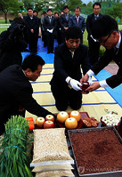 "구제역 때문에, 또 축산업 발전을 위한 연구를 위해 희생된 가축들의 영혼이여, 편히 잠드소서!"9일 경기도 수원 농촌진흥청 국립축산과학원 '축혼비(畜魂碑)' 앞에 배추와 무, 건초 등 가축들이 즐겨 먹는 사료로 채워진 제사상이 차려졌다. 축산과학원은 개원 기념일인 1