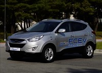 현대자동차가 한번 충전으로 650㎞를 주행할 수 있고 연비가 ℓ당 31㎞나 되는 수소연료전지차 개발을 완료하고 내년부터 실증사업에 투입한다고 19일 밝혔다. 차세대 친환경차인 '투싼ix 수소연료전지차(FCEV)'는 지난 3월 제네바모터쇼에서 처음 공개된 뒤 차량 설