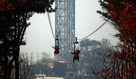 경기도 가평에서 강원도 춘천 남이섬으로 한 번에 날아갈 수 있는 짚와이어가 개장했다. 80m 높이의 타워에서 도르래를 타고 활강하는 이 시설은 최대 시속 90여㎞의 속도로 북한강을 가로질러 1분이면 남이섬과 자라섬에 도착할 수 있다. 김문수 경기도지사와 이광재 강원도지