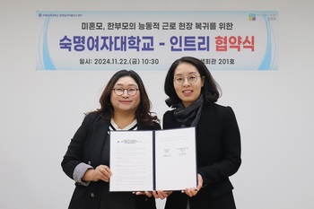 숙명여자대학교 대학일자리플러스센터는 국내 대표 미혼모단체인 '변화된 미래를 만드는 미혼모협회 인트리'(이하 인트리)와 경력단절을 경험한 미혼모의 사회복귀, 한부모가족의 자립 지원에 힘을 모으기로 했다고 26일 밝혔다.업무협약식은 지난 22일 숙명여대 학생회관 201호에