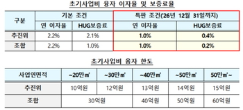 국토교통부는 주택재건축·재개발정비사업에 대한 초기사업비 융자지원 이자율을 대폭 낮춘 1년 한시 특판상품을 출시한다고 8일 밝혔다.초기사업비 융자는 사업 초기 자금조달에 어려움을 겪는 정비사업 추진위원회와 조합에 용역비·운영비·총회개최비 등 사업비를 저리로 대출해주는 제