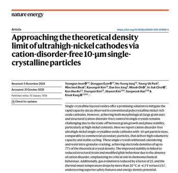 SK온, 서울대와 고밀도 단결정 양극재 개발 … 배터리 성능·안정성·에너지 밀도 ↑