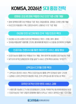 해양환경 변화에 해양사고 예방체계 고도화 … KOMSA, 올해 5대 중점 전략 추진