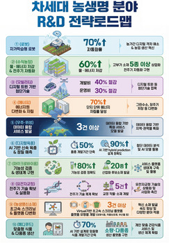 농림축산식품부는 인공지능(AI), 바이오, 데이터 등 신기술 융합을 기반으로 농산업의 구조적 한계를 극복하고 미래 성장 동력을 확보하기 위해 '차세대 농생명 분야 연구개발(R&D) 전략로드맵'을 수립했다고 30일 밝혔다. 이번 로드맵은 국정과제의 이행을