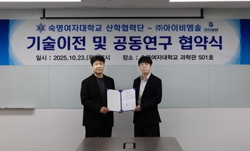 숙명여자대학교 산학협력단은 생명시스템학부 김종민 교수 연구팀이 지난 23일 교내 과학관에서 바이오 스타트업 ㈜아이비엠솔과 폐동맥고혈압 치료제 개발을 위한 2차 기술이전 및 공동연구 협약을 맺었다고 27일 밝혔다.이날 행사에는 김종민 교수와 아이비엠솔 권병수 대표 등이
