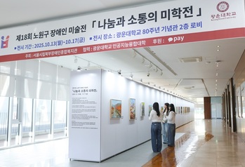 광운대학교는 지난 13~17일 교내 80주년 기념관 2층 로비에서 제18회 서울 노원구 장애인 미술전 '나눔과 소통의 미학전'이 열렸다고 23일 밝혔다.13일 개막식에는 광운대 박병준 인공지능융합대학장, 서울시립북부장애인종합복지관 신연화 관장, 한국장애인미술협회 이순화