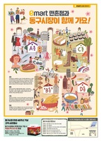 대구지역 이마트가 지역 전통시장 활성화에 나선다고 22일 밝혔다.이마트는 오는 23일부터 29일까지 만촌점에서 대구 동구시장을 알리는 전단지를 매장에 비치한다.대구 동구시장은 이마트 만촌점과 약 300m 거리에 이웃한 대구 수성구 최대 규모의 전통시장으로 분식부터 빈대