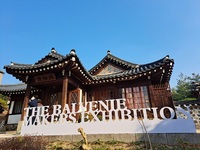 문을 통과하자 사위가 고요하다. 둥글게 뻗은 기와 위로는 구름 한 점 없는 파란 하늘이 내려 앉아있다. 액자의 안으로 들어온 것 같은 느낌이다. 발을 옮기자 시야가 트이며 양 쪽으로 보리밭의 풍경이 눈에 들어온다. 휘겸재, 발베니가 열두 명의 공예 작가들과 선보이는 ‘