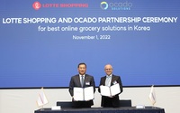 롯데쇼핑이 영국의 온라인 슈퍼마켓 ‘오카도(Ocado)’와 파트너십을 맺고 온라인 그로서리 경쟁력 강화에 나선다고 1일 밝혔다.이날 양사 협력 체결식에는 롯데쇼핑 대표이사이자 롯데 유통군 총괄대표인 김상현 부회장과 오카도 그룹 CEO 팀 슈타이너(Tim Steiner)