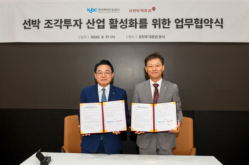 한국해양진흥공사는 유진투자증권와 지난 17일 서울 여의도에서 '선박 조각투자 산업 활성화를 위한 업무협약'을 체결했다고 18일 밝혔다. 이번 협약식에는 안병길 해진공 사장과 고경모 유진투자증권 대표이사를 비롯해 양 기관 관계자들이 참석했다. 양 기관은