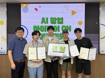 [포토] 서울시립대 'StudyOn' 팀, 'AI 창업 아이디어 ON 경진대회' 은상 받아