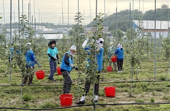 [포토] 명지사랑봉사단, 경북 영주시 순흥면서 농촌일손 돕기 '구슬땀'