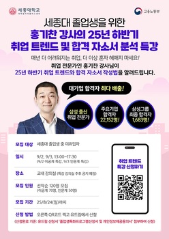 세종대 일자리플러스센터, 졸업생 위한 '취업 트렌드·자소서 전략 특강' 연다 … 홍기찬 전문강사 초청