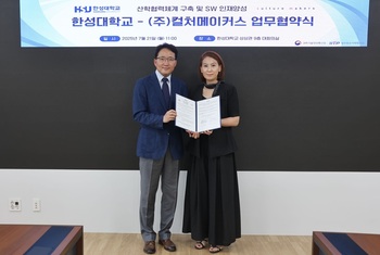 한성대학교 SW중심대학사업단은 지난 21일 교내 상상관 9층 대회의실에서 ㈜컬처메이커스와 소프트웨어(SW)·인공지능(AI) 분야(융합보안)의 기술인재 양성과 관련 교과목 운영·개설 지원을 위한 업무협약을 맺었다고 25일 밝혔다.협약식에는 한성대 이관우 SW중심대학사업단