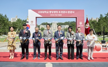 고려대학교가 25일 인문사회캠퍼스 중앙광장 조경공사 준공식을 열었다고 밝혔다. 낡은 시설을 정비하고 쾌적한 캠퍼스 환경을 조성했다.준공식에는 김동원 총장을 비롯해 정순영 교무부총장, 윤성택 연구부총장, 심동철 총무처장, 원정연 관리처장과 이정원 총학생회장, 기부자 등