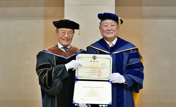 한국외대, '샐러리맨 신화' 윤윤수 미스토홀딩스 회장에 명예 경영학박사 학위 수여