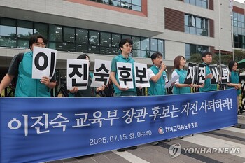 진보 성향 교원 단체들이 이진숙 교육부 장관 후보자의 지명 철회와 자진사퇴를 연이어 요구하고 나섰다.전국교직원노동조합(전교조)은 15일 오전 서울 종로구 정부서울청사 앞에서 기자회견을 통해 "이재명 대통령은 이진숙 후보자 지명을 즉각 철회하라"고 밝혔다.전교조는 이날