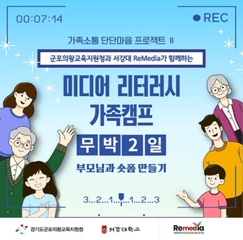 서강대학교 SSK연구단 레메디아(ReMedia)는 경기 군포의왕교육지원청과 함께 지난달 21일과 22일 이틀에 걸쳐 서강대 캠퍼스에서 '미디어 리터러시(이해력) 가족 캠프'를 열었다고 4일 밝혔다.이번 캠프는 초등학교 5·6학년 자녀를 둔 가족을 대상으로 했다. 디지털