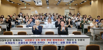 명지대학교 미래교육원은 지난달 24일 서울 인문캠퍼스 MCC(명지캠퍼스복합단지) 3층 10311호 강의실에서 '서대문구 9개 대학 연합 행복캠퍼스'의 2024년도 수료식과 2025년도 개강식을 진행했다고 3일 밝혔다.이날 행사에는 이성헌 서울 서대문구청장과 임연수 명지