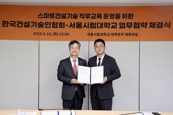 서울시립대학교는 지난 10일 대학본부 대회의실에서 한국건설기술인협회와 건설 분야 청년 취업 지원을 위한 업무협약을 맺었다고 11일 밝혔다.이번 협약은 서울시립대 대학일자리플러스센터가 건설기술인협회와 공동 진행하는 '청년 예비건설인을 위한 스마트건설기술 직무교육'의 원활