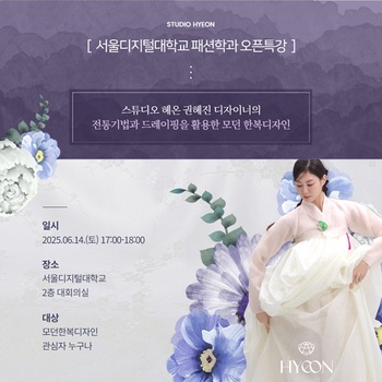 서울디지털대학교는 오는 14일 오후 5시 교내 대회의실에서 권혜진 패션학과 교수가 모던 한복 디자인에 관한 특별 강연을 연다고 9일 밝혔다.이번 특강은 '전통 기법과 현대 의상 디자인의 드레이핑 기법을 활용한 모던 한복 디자인'을 주제로 열린다. 전통을 재해석한 모던