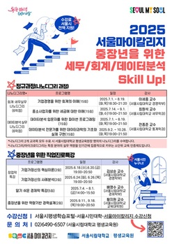 서울시립대학교 평생교육원은 이달 18일부터 오는 10월까지 서울시평생교육진흥원의 서울마이칼리지 사업 '중장년을 위한 세무·회계·데이터분석 스킬 업(Skill Up)'을 6월~10월까지 운영한다고 9일 밝혔다.이번 과정은 서울시의 중장년 집중지원 프로젝트인 '서울런405