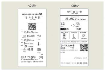 SRT 운영사 에스알(SR)은 28일부터 이용객 중심 디자인으로 개선한 SRT 승차권 디자인을 선보인다고 밝혔다.새롭게 개선한 승차권 디자인은 기존보다 더 큰 글씨체와 명확한 색상 대비를 적용해 명시성을 높였다.출발·도착역 여정과 열차 탑승, 좌석번호 등 열차 이용의