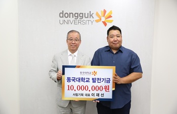 동국대학교는 지난 21일 총장 접견실에서 서림기획이 기부금 1000만 원을 전달했다고 22일 밝혔다.이날 기부금 전달식에는 서림기획 이성민, 이재선 대표를 비롯해 윤재웅 총장, 김용현 교무부총장, 이경철 대외협력처장 등이 참석했다.서림기획은 40년 이상 동국대 교내에