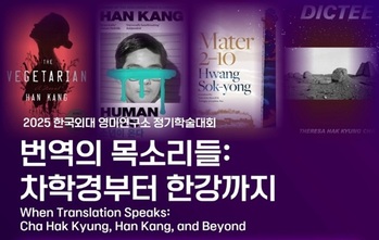 한국외국어대학교 영미연구소는 오는 23일 오후 1시 30분 서울캠퍼스 교수회관 강연실에서 정기 학술대회 '번역의 목소리들: 차학경부터 한강까지'를 연다고 19일 밝혔다.이번 행사는 문학번역의 문화적, 산업적, 창작적 의미를 조명하고 한국문학의 세계화 과정에서 번역의 역