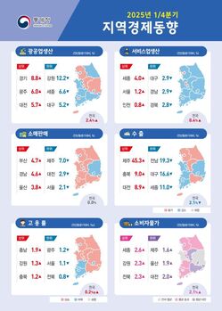 올해 1분기 전국 소매 판매가 3년 만에 보합으로 전환했다. 1분기 17개 시도 중 광공업 생산이 늘어난 곳은 지난해 4분기 12곳의 절반인 6곳으로 줄었다. 서비스업 생산 증가 지역도 11곳에서 3곳으로 급감했다. 같은 기간 모든 지역에서 물가가 오른 가운데 세종과