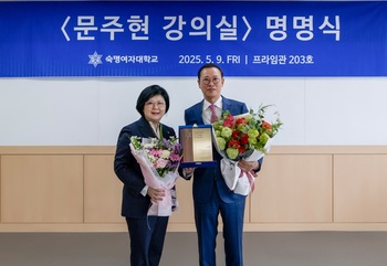 숙명여자대학교는 종합부동산 금융그룹인 엠디엠그룹 문주현 회장이 발전기금으로 4억7000만 원을 기부했다고 12일 밝혔다.숙명여대는 문 회장 이름을 딴 '문주현 강의실'을 프라임관 203호에 조성하고 지난 9일 명명식을 했다.국내 최대 디벨로퍼(부동산 개발회사) 엠디엠그