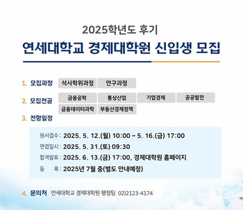 연세대 경제대학원, 부동산경제정책·금융데이터과학 2개 전공 신설 … 야간 석사과정