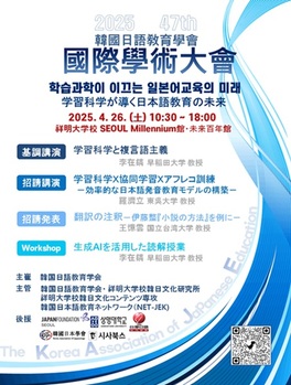 한국일어교육학회가 오는 26일 상명대학교 서울캠퍼스에서 '학습과학이 이끄는 일본어교육의 미래'를 주제로 제47회 국제학술대회를 연다고 24일 밝혔다.한국일어교육학회는 매년 국내·외 일본어교육 연구자와 실천가들이 모여 교육의 방향을 함께 모색하는 국제학술대회를 연다. 올