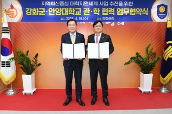 안양대학교는 지난 16일 인천시 강화군청에서 강화군과 '인천시 지역혁신중심 대학지원체계(i-RISE) 사업'을 위한 업무협약을 맺었다고 18일 밝혔다.이날 업무협약식에는 안양대 장광수 총장, 장용철 부총장, 임동영 강화캠퍼스 행정실부장, 김희찬 총무부장과 박용철 강화군