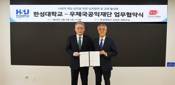 한성대학교는 지난 4일 교내 상상관 9층 대회의실에서 우체국공익재단과 사회적 가치 확산을 위한 업무협약을 맺었다고 7일 밝혔다.이날 협약식에는 한성대 이창원 총장, 장명희 교학부총장, 김지현 글로컬협력처장, 김영일 글로컬협력처 부처장, 이주형 ESG센터장과 우체국공익재