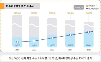 서울 지역 이주배경학생 수가 2만 명을 돌파한 가운데 서울시교육청이 이주배경학생 초밀집학교의 학급당 학생 수를 18명 수준으로 줄여나가기로 했다. 중부권에는 제2서울다문화교육지원센터를 구축한다. 원활한 의사소통을 위해 인공지능(AI) 기반 동시 통·번역 솔루션도 확대