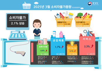 3월 소비자물가 2.1% 상승, 석달째 2%대 … 먹거리물가 들썩