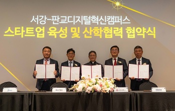 서강대학교는 지난 27일 경기도 성남시 판교 제2테크노밸리 위든타워에서 모트렉스 주식회사, 주식회사 이녹스첨단소재, 에스트래픽 주식회사, 와이엠씨 주식회사와 함께 판교 디지털혁신캠퍼스 스타트업 육성 및 산학협력 협약을 맺었다고 28일 밝혔다.이번 협약을 통해 서강대는